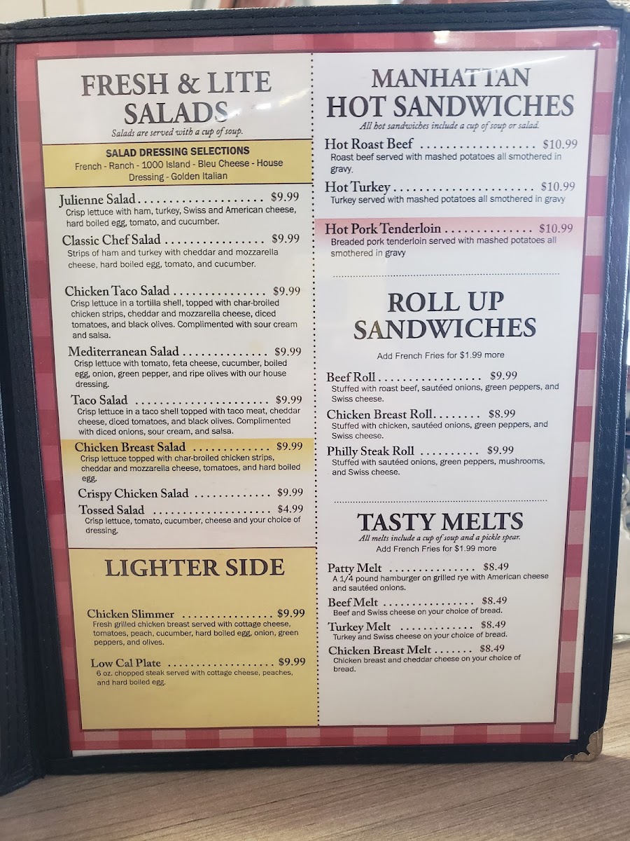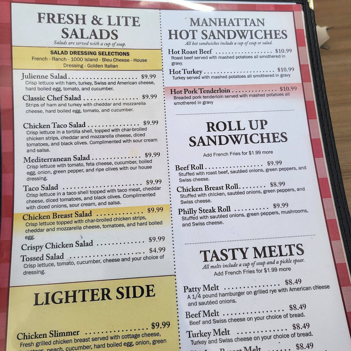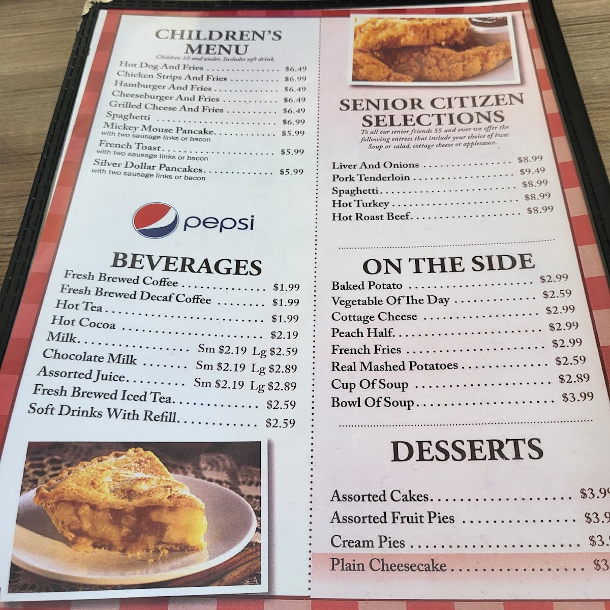 The menu is a delightful journey through comfort food, featuring standouts like the delicious pork tenderloin sandwich and the flavorful chicken parmesan. Breakfast enthusiasts will be enchanted by the unique Gyro Meat with Eggs and Hash, which has drawn guests from miles away. The restaurant's country feel fosters a genuine connection, where patrons feel like family. With friendly service and tempting desserts to satisfy your sweet tooth, every visit promises to be memorable.